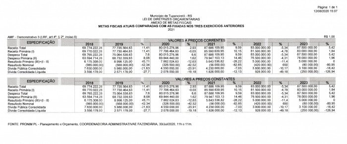 • Relatório de Metas Fiscais do 1º Quadrimestre de 2020.