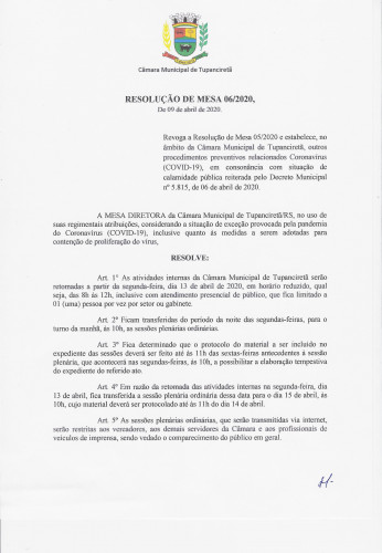 • Resolução de Mesa nº 05/2020