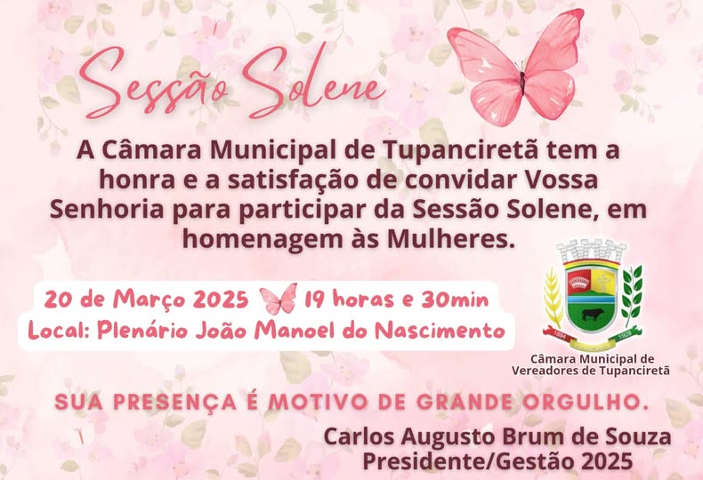 • Câmara Municipal convida para Sessão Solene em homenagem ao Dia Internacional da Mulher